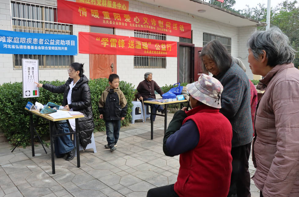 重阳节来临之际,10月25日,一场以“情暖重阳”为主题的爱心义诊慰问活动在我县苏村乡高庄村党群服务中心举行。活动由高庄村村委会、县企业联合会、红烛志愿者协会、爱眼门诊、纳美生活超市共同举办,旨在弘扬中华民族尊老敬老的传统美德,为乡村老人送上节日的问候与社会的温暖。