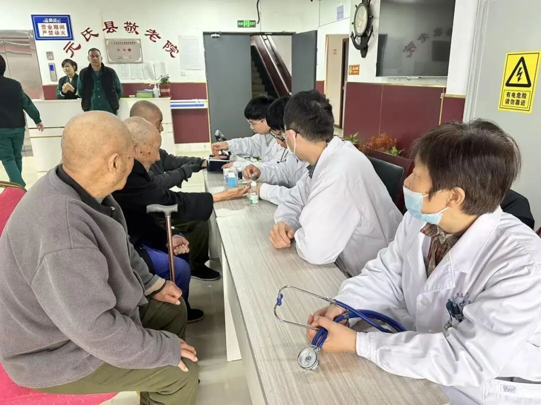 县总医院为县敬老院的老人们进行免费的健康体检服务。