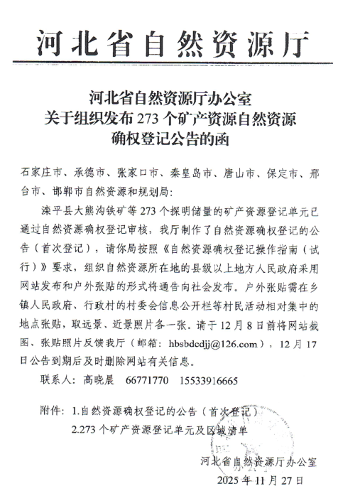 关于组织发布273个矿产资源自然资源确权登记公告的