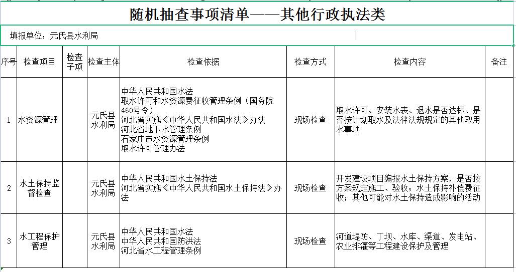 随机抽查事项清单