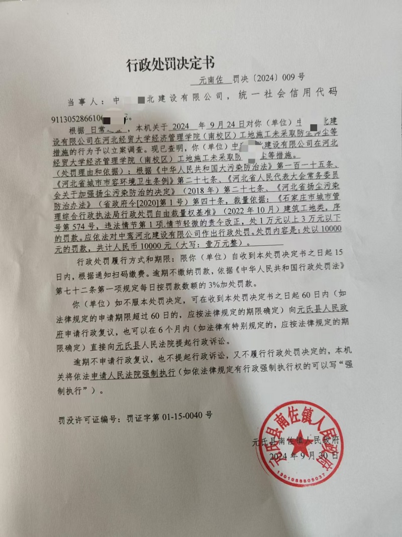 南佐镇行政处罚决定书