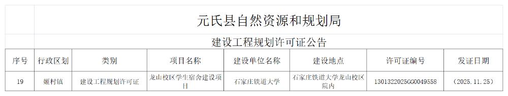 工程规划证公告(2025.11.25)