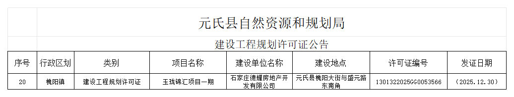 工程规划证公告(2025.12.30)