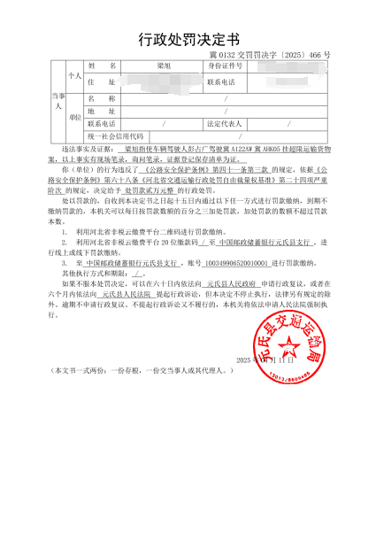 冀0132交罚〔2025〕466号