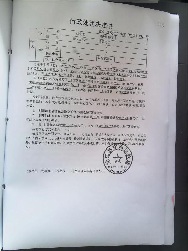 刘景素道路运输经营者违反车辆技术管理规定行为案