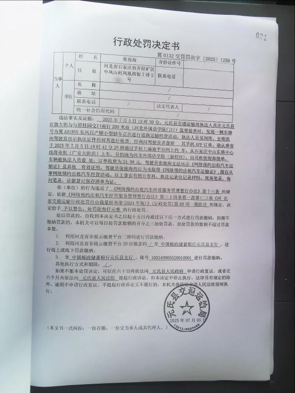 张俊海未取得《网络预约出租汽车运输证》擅自从事网约车经营活动案