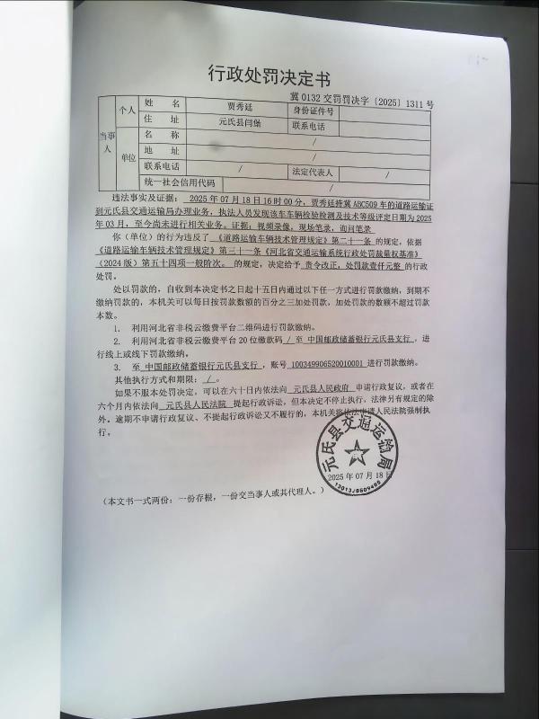 冀0132交罚〔2025〕1311号