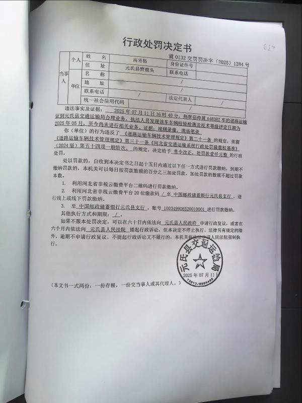冀0132交罚〔2025〕1284号