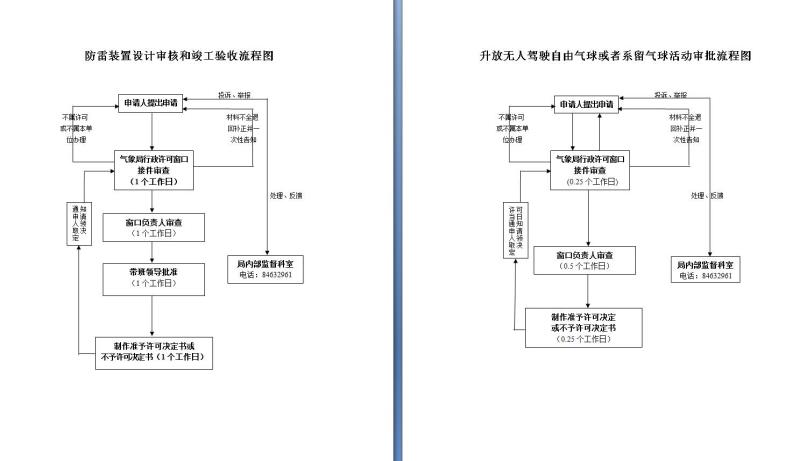 防雷装置设审核和竣工验收流程图 升放无人驾驶自由气球或者系气球活动审批流程图
